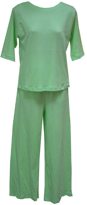 RocketWearŽ's Pajamas/Loungewear in super soft 100% brushed cotton knit has a boat-neck pullover top with three-quarter sleeves and matching elastic-waist wide-leg pants with two besom pockets in lime green - perfect for entertaining, running errands, relaxing. Machine wash, Import. Sizes run as follows: S(6-8), M(10-12), L(14-16), XL(18).